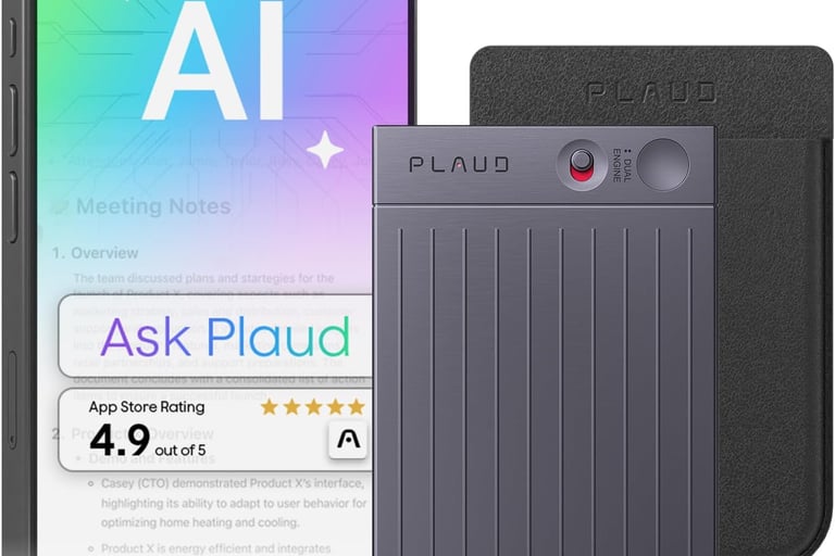 Plaud Note AI Voice Recorder Capture every detail with this smart voice recorder featuring AI-powered transcription and summarization. Control it easily via app, record in up to 112 languages, and enjoy 64GB storage for lectures, meetings, or calls. Comes with a sleek protective case — perfect for professionals, students, and creators on the go.